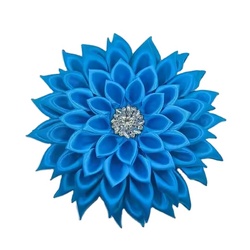 เข็มกลัดรูปดอกไม้ริบบิ้นผ้าซาตินสีฟ้ายืดหยุ่นขนาด13ซม. 4.5นิ้ว